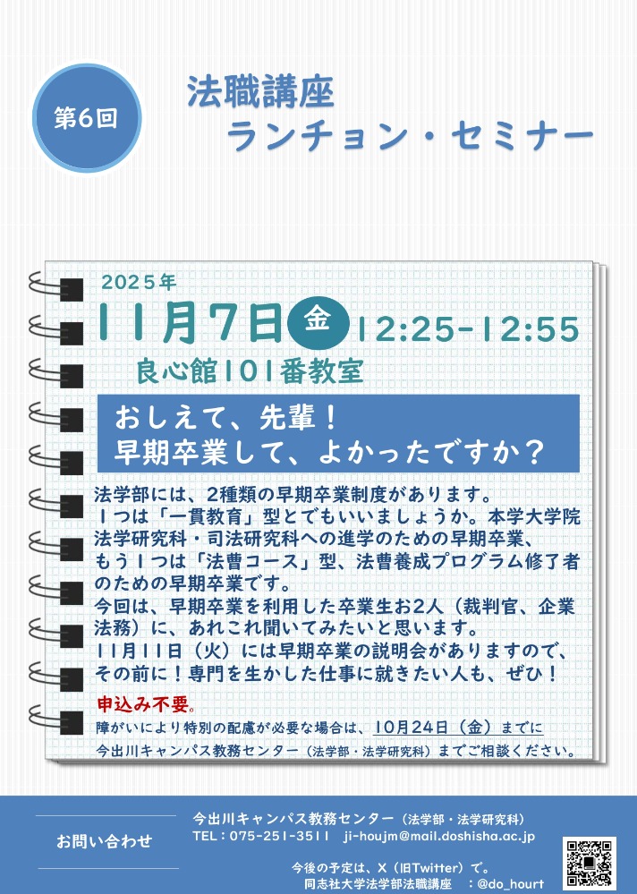 2025年度 法学部講演会開催のお知らせ(共催 同志社大学法学部法職講座)